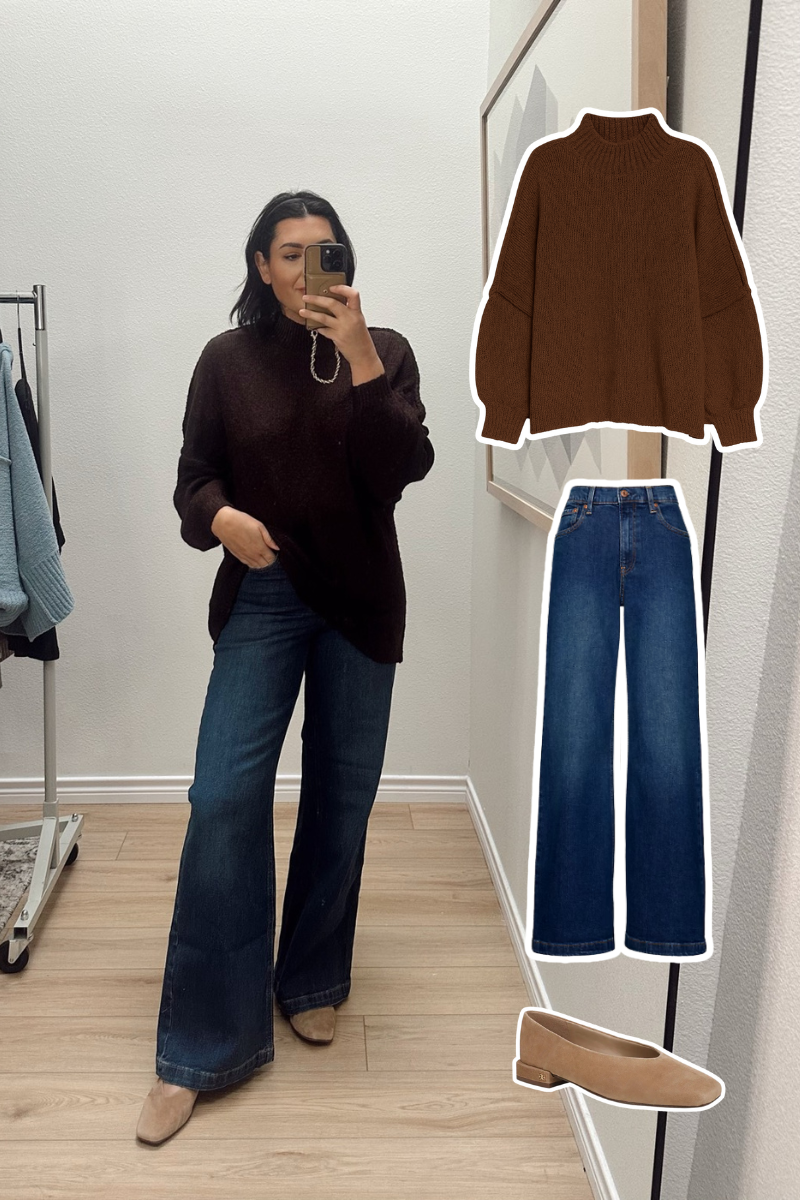 I’ve found a few Sezane dupes this fall (find my Old Navy one here!) and this is one to add to the list. This one is more fitted than the Old Navy one, for comparison. I find it runs a bit small / snug especially at the arms. I am in the large, so size up if you want a looser fit but this one is a closer fit in general. This brown is a more reddish / vibrant hue than shown in the listing. It’s a chunky knit, regular length and non-itchy, as well!