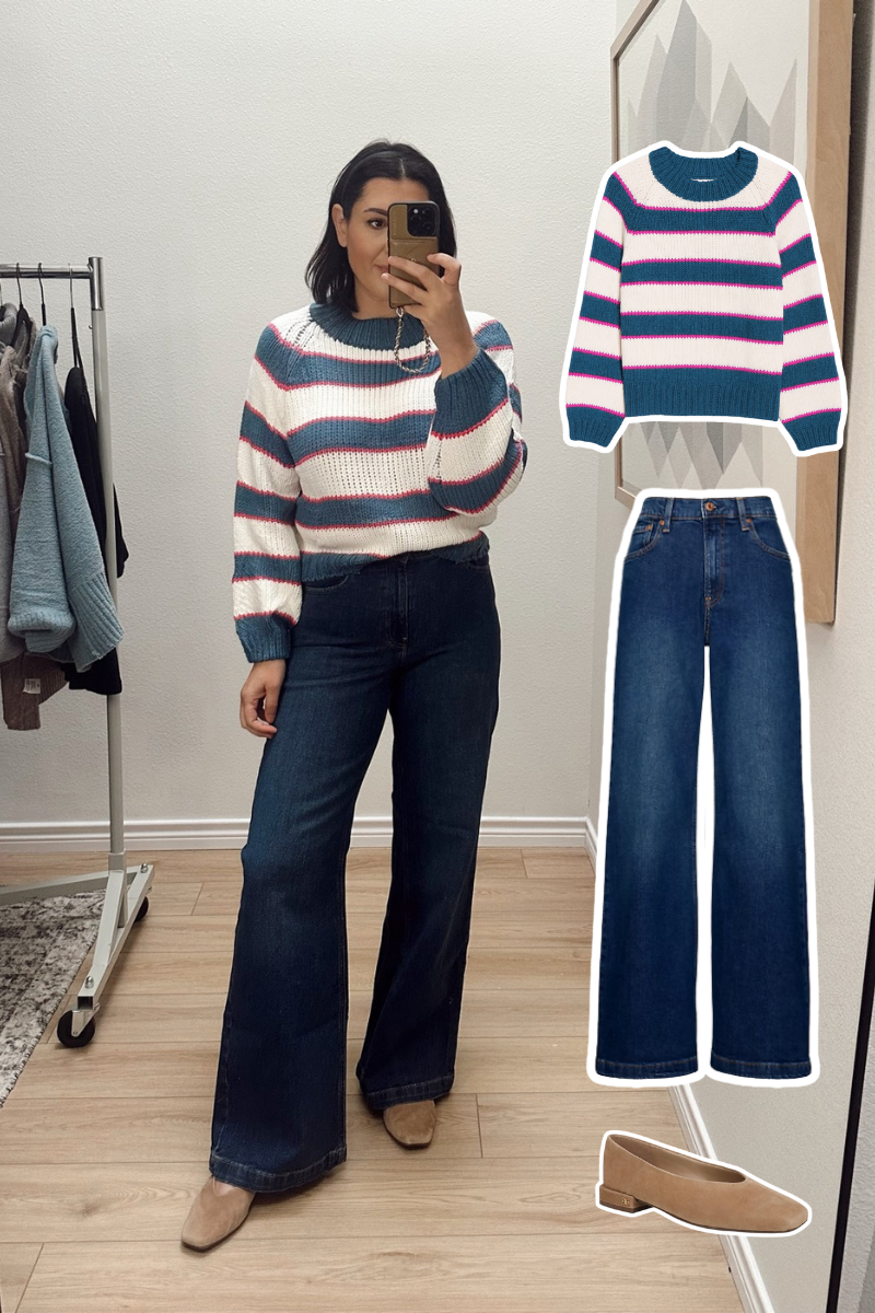 Who’s this for: if you like a trendy, fun piece this is the one! If you reach for color — or you want to start reaching for color, this sweater has a ton of variety. Perfect for denim.
