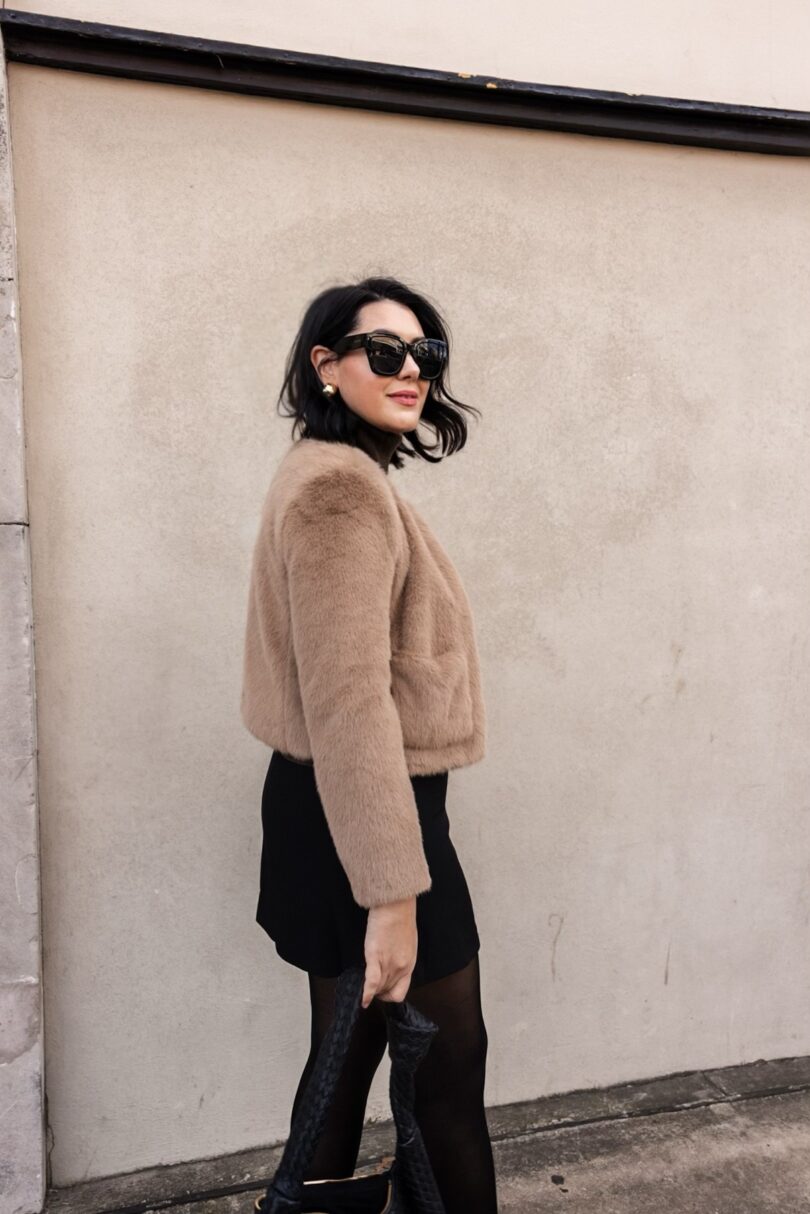 My skort is Gap (yes it’s a skort!) and actually sold out now but I’ve linked this one from Aritizia I really like as well. But let’s be honest, any black mini skirt works for this look. If you’ve got a black mini skirt, then you’ve got a black mini skirt. I don’t think there is anything special to this simple silhouette. I’ve had ones before from Old Navy, & Other Stories, Nordstrom, etc and to me they’re all about the same. As long as it fits and you like it, it doesn’t matter where it came from. I prefer a poly blend skirt with structure, because I find the color doesn’t fade versus a cotton or cotton blend. But that’s just me! That’s what’s really nice using classic pieces to create simple but effective outfits. This look is very re-creatable with simple classic pieces and I think that’s why I like it so much. It felt new to me but really I think it just classic and refined.