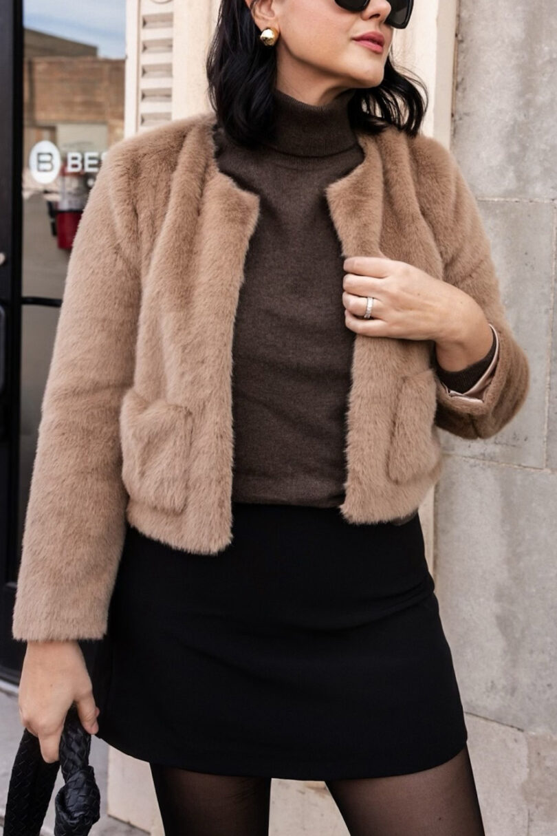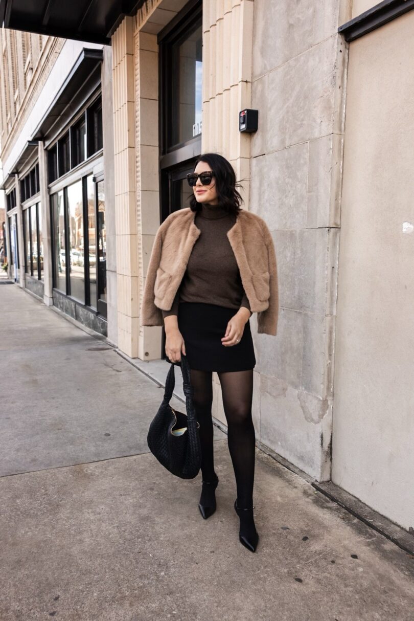 And then I tossed a faux fur jacket on just because I could. I’m lowkey obsessed with this jacket right now so any time there’s a slight chill in the air I reach for it. It’s on sale right now too! I have the medium, but could have sized up to a large for some extra wiggle room. Find it here.Ā