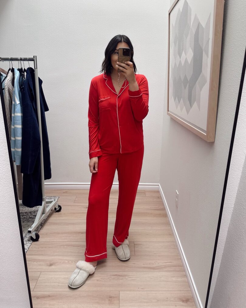 This selfie is from my Gap try on but this is what I wore all day on Christmas. From morning to night, this was the ‘fit. I really love this pair of pajamas from Gap, by the way. 10/10 recommend. They’re lightweight enough (I’m a hot sleeper) that I can actually sleep in them. Some may say thin, I say lightweight. I’m in the large and love the looser fit.