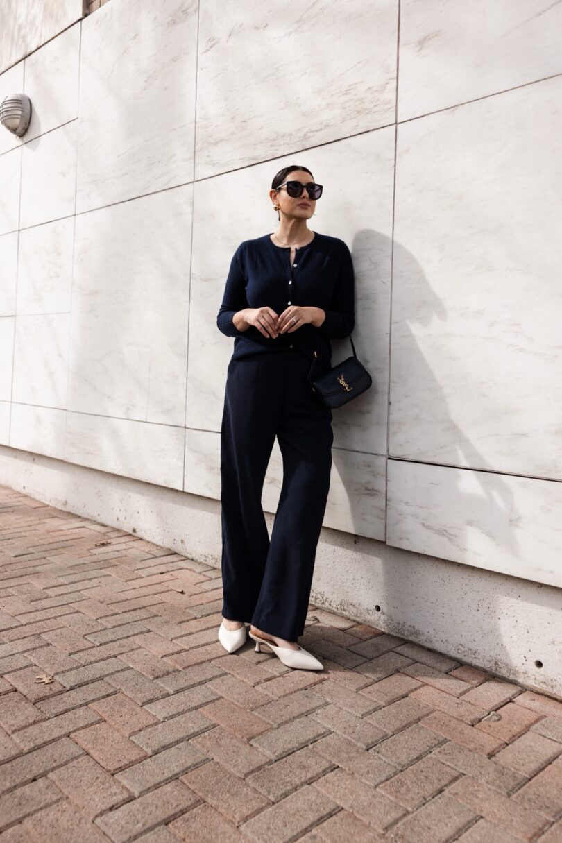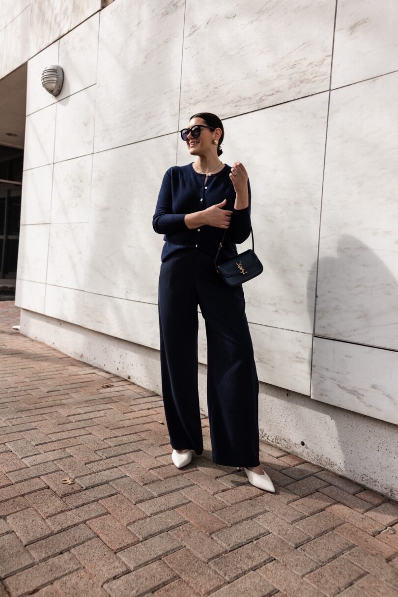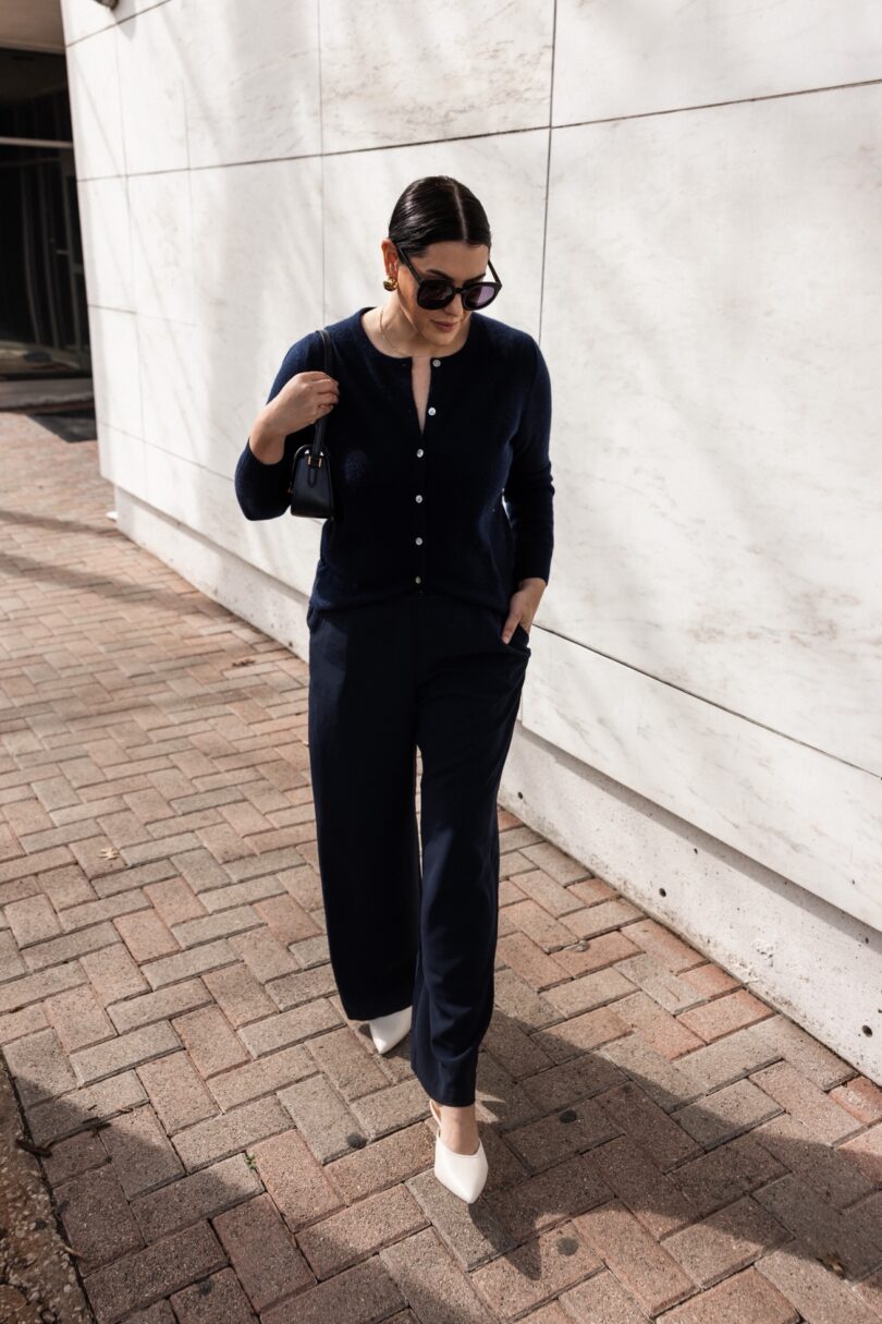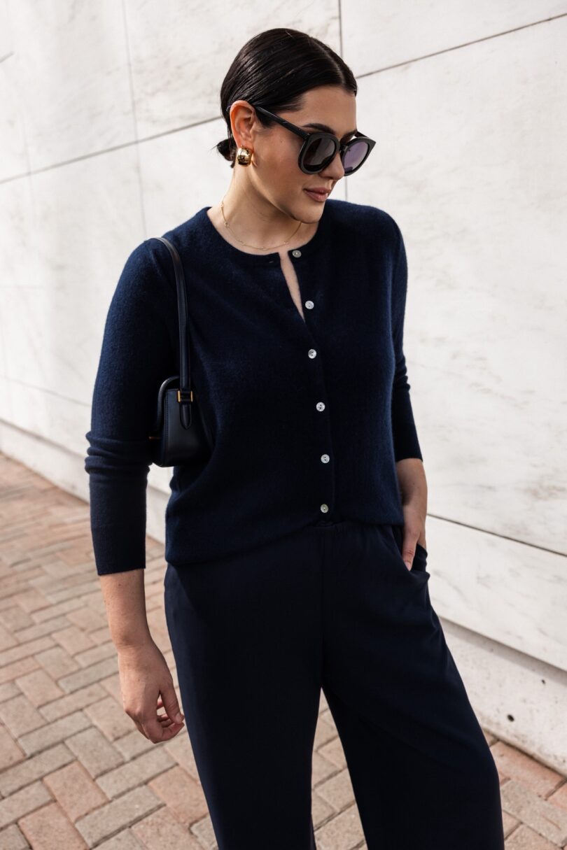 Did you know that I don’t typically buy two of the same item…like ever? I’m not sure why this is but I treat this as a silent rule that I always uphold. And it’s not like this is a minimalist rule because I am no minimalist. Since I couldn’t find where this rule came from, I decided to break it on this cardigan. You see, this cardigan waltzed into my life back in 2024 as a size medium and in the color black and I’ve loved it since. Lately I’ve been wanting a navy cardigan in a looser fit. I looked and looked but kept coming back to this Quince one. As this was the only cardigan I found that checked all of my boxes: color, fit, price. It’s under $100 and I knew that it held up, so I ordered and never looked back. It’s a solid cardigan, 100% cashmere and the perfect fit.