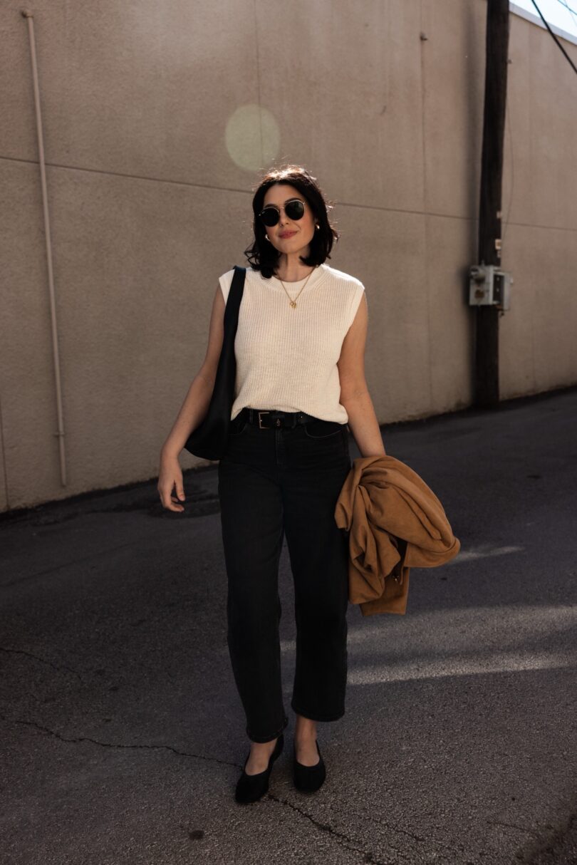 Side note — my sweater vest is Quince but it’s not listed currently. I’m wondering if this is a seasonal thing or it’s just gone forever? I have no idea but I’ve linked an almost exact sweater vest here.