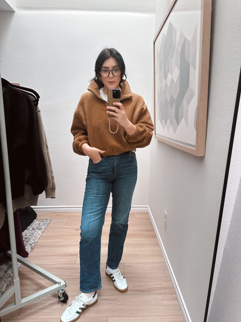 This old pullover is from 2020 and has been a favorite around here for a while. I always find myself reaching for it in winter. Since it’s old Reformation and deadstock fabric, I couldn’t find a direct similar. But did find this fleece pullover from Aritzia that I liked!