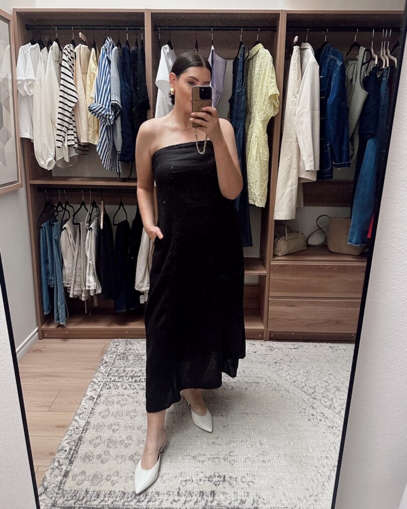 I bought the strapless linen dress from Quince in all the colors because i love the fit. I’m a busty 34E and unstructured dresses make me look pregnant but the subtle tailoring on this dress is fantastic. I wish there were more colors. So comfortable.