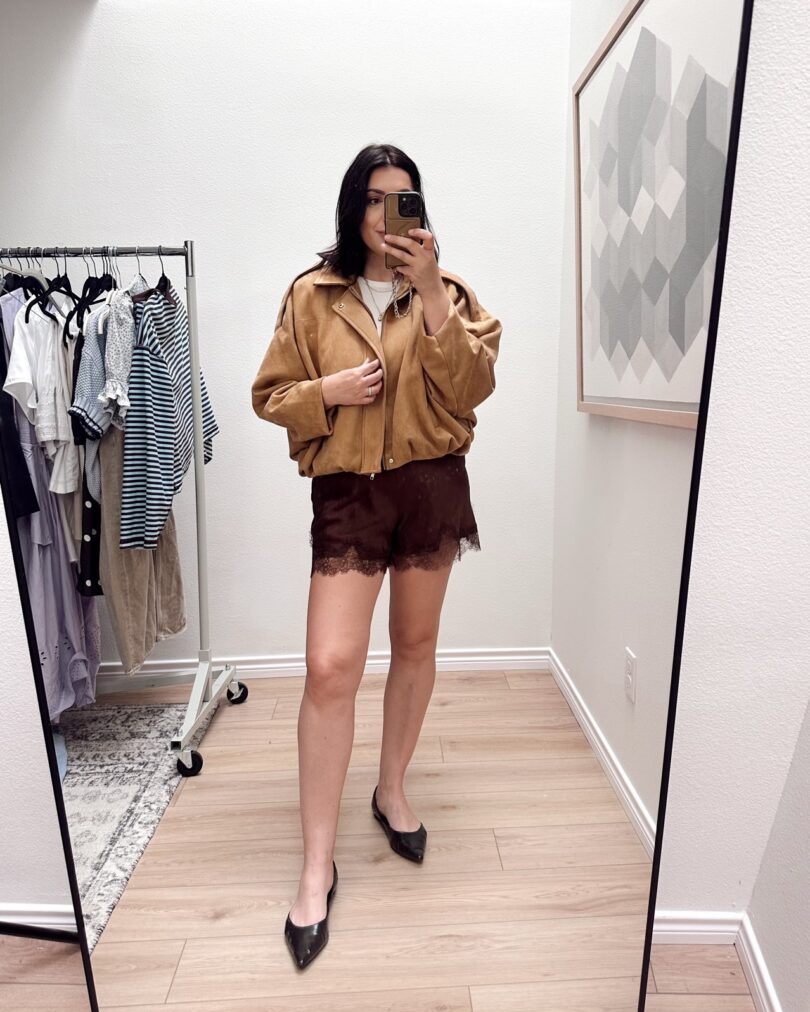 Suede Jacket | Anthro Lace Shorts | Similar Flats | Gap Tee