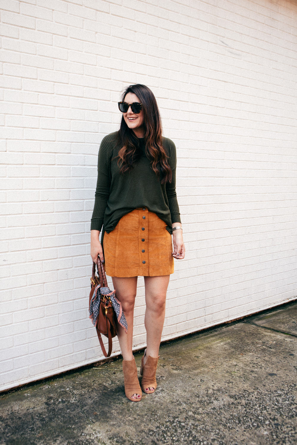 I snagged this button down mini skirt on sale a few weeks back when Madewell was having a weekend promotion. I was absolutely giddy when it came in because I have been dying for this style of skirt lately. I love the button down miniskirt trend, it’s just adorable and such a darling update