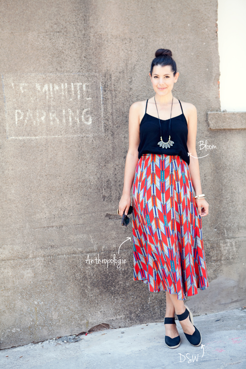 {Tank: Similar | Skirt: Old Anthro | Necklace: Vanessa Mooney | Shoes: Crazy Similar}Yes, you are seeing that right. My bangs have decided to become a member of the rest of my hair in the bun party. It is your responsibility to remind me this the next time I consider cutting bangs: my hair