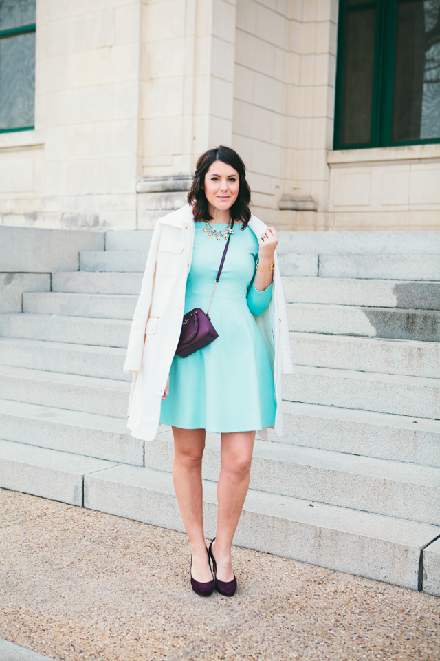 On my hunt for a few holiday dresses this season at Nordstrom, I found this one (as seen above) and loved it from the moment my eyes met the hanger. It’s such an unexpected color for this season, so I had to really think about if this dress was right for right now. It